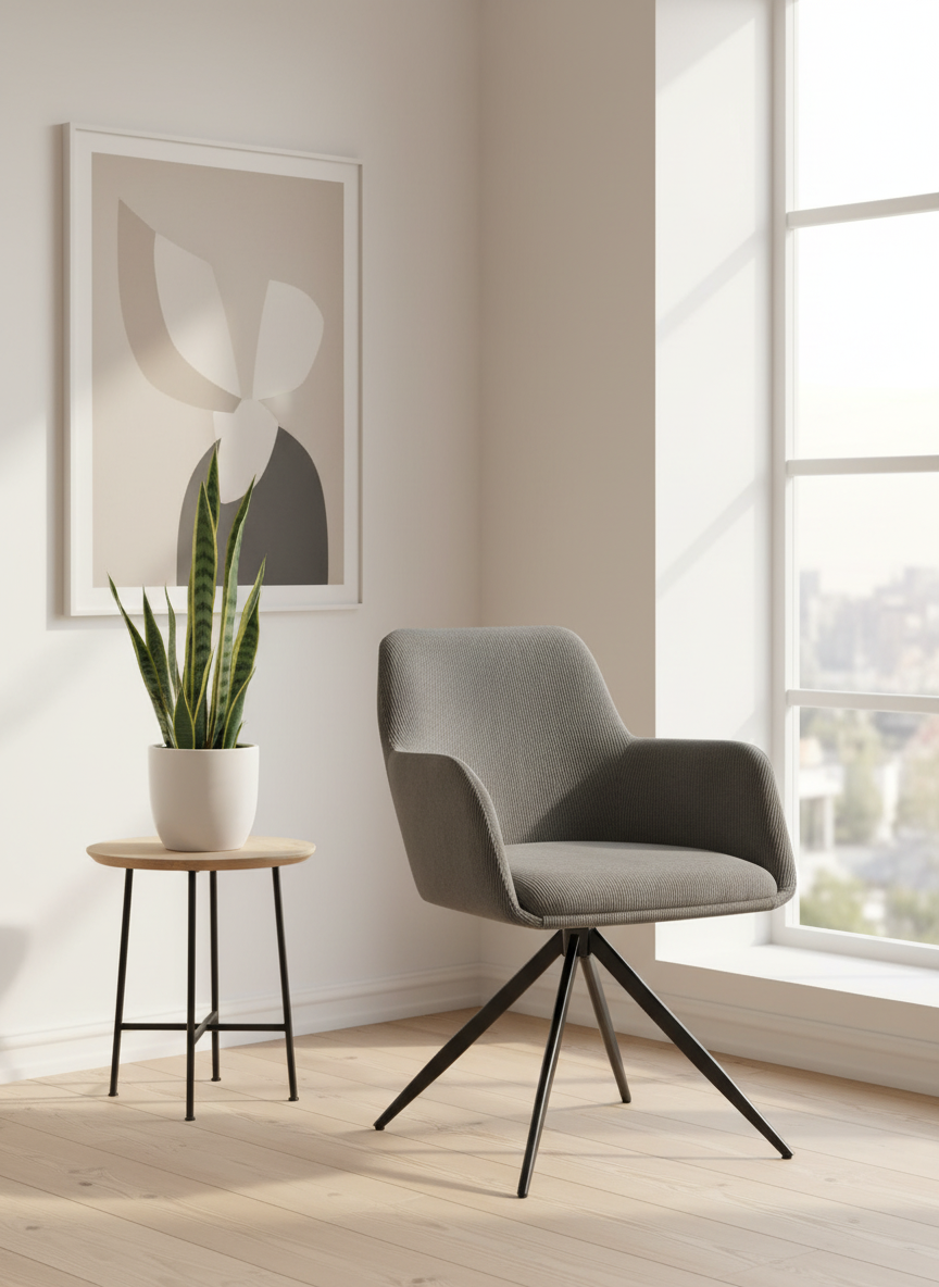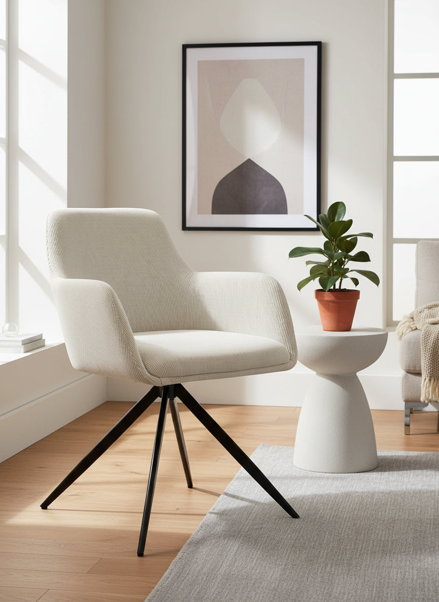 Deze stoel heeft een moderne uitstraling met een zachte corduroy stof dat helemaal van deze tijd is. Het staat mooi in de eetkamer, woonkamer, werk- of vergaderruimtes. Een veelzijdige stoel die je in elke ruimte kan neerzetten.