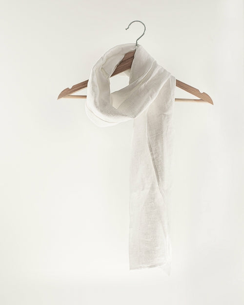 Luchtig en zachte witte sjaal van 100% gewassen linnen. Deze éénlaagse sjaal past bij elk seizoen. Als accessoire in de zomer of als extra laagje tijdens koudere dagen. Dankzij het voorwassen en voorgekrompen linnen voelt de stof uitzonderlijk zacht aan en is hij eenvoudig te onderhouden.
