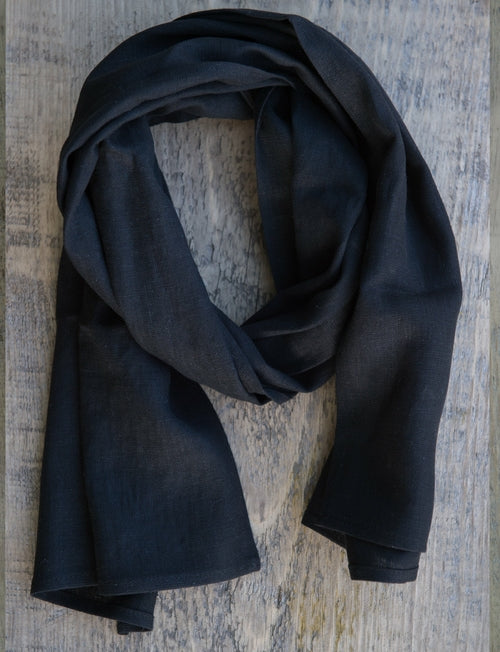 Luchtig en zachte zwarte sjaal van 100% gewassen linnen. Deze éénlaagse sjaal past bij elk seizoen. Als accessoire in de zomer of als extra laagje tijdens koudere dagen. Dankzij het voorwassen en voorgekrompen linnen voelt de stof uitzonderlijk zacht aan en is hij eenvoudig te onderhouden.