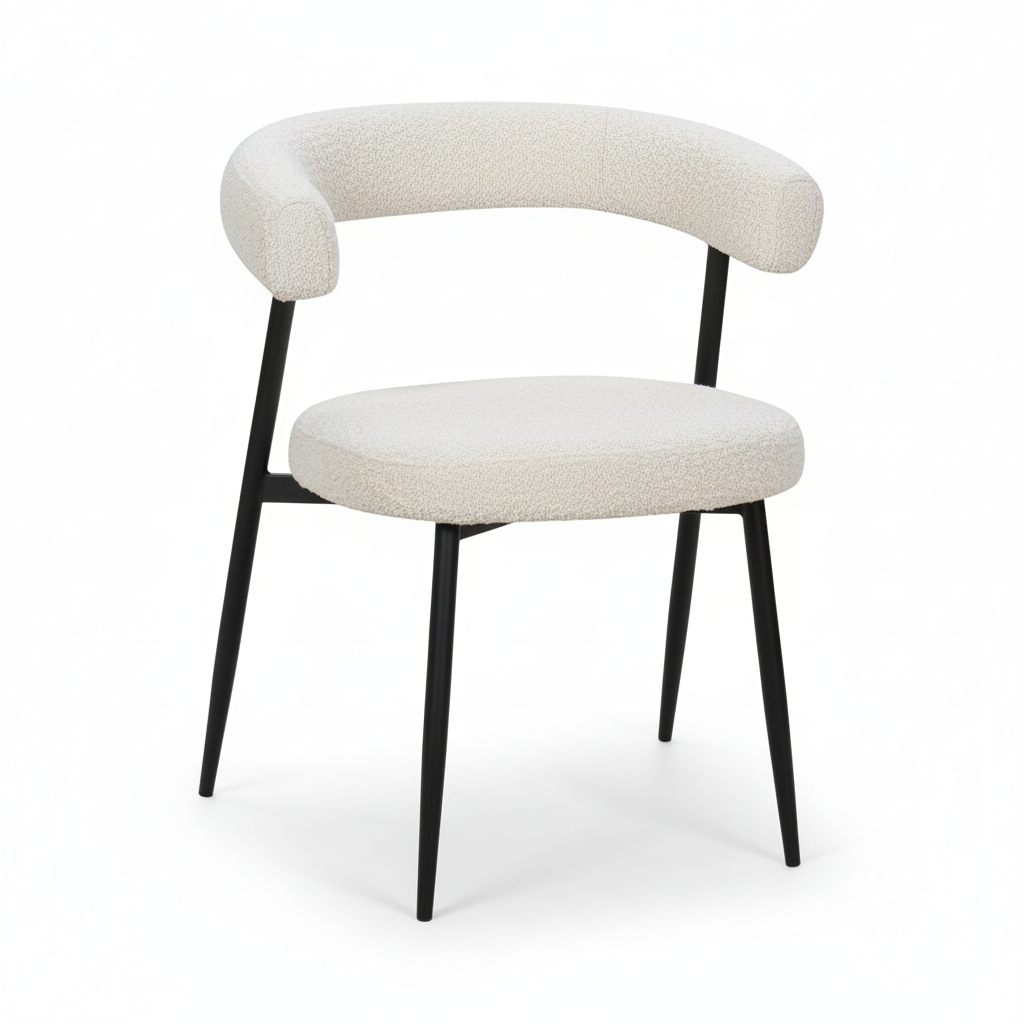 Deze Japandi stoel met een open design is bekleed met hoogwaardige chenille stof en ondersteund door een stevig metalen onderstel. Voor zowel moderne als klassieke interieurs. De zachte en luxe chenille bekleding voelt heerlijk aan en geeft je eetkamer een warme en uitnodigende uitstraling.