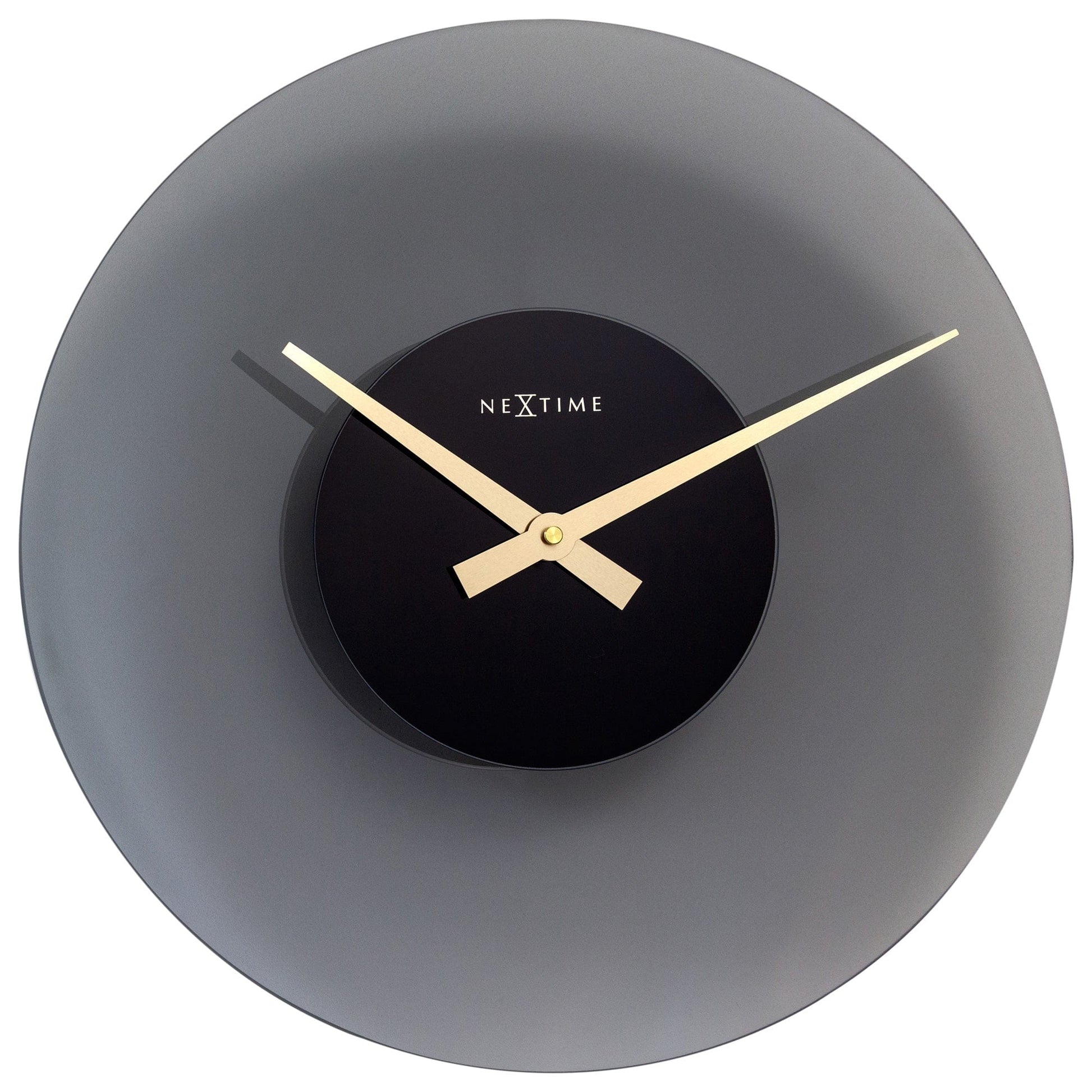 Geef je interieur een design upgrade met deze moderne klok. De klok lijkt letterlijk te zweven dankzij de gebogen matte glazen achterplaat. Dit gecombineerd met een glanzende zwarte wijzerplaat en gouden wijzers. Het spel tussen transparant en solide, zacht en strak, maakt deze klok een echte blikvanger in elke ruimte.