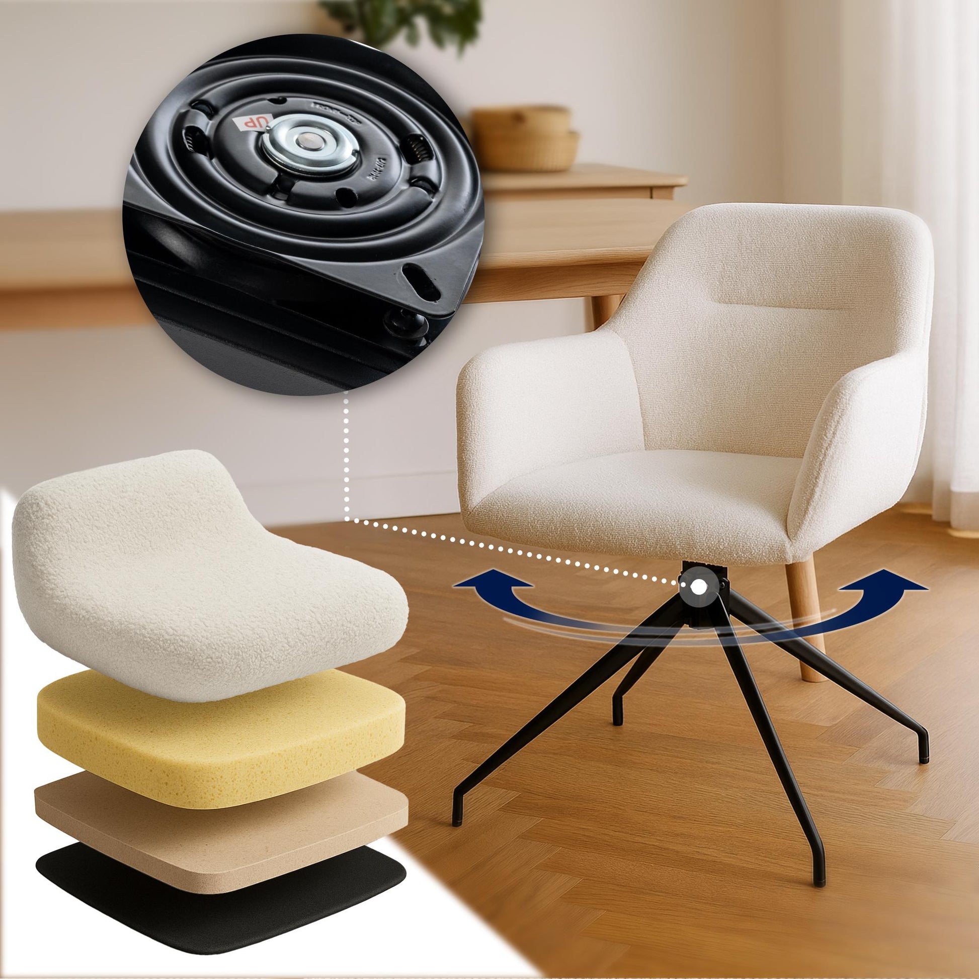 Draaibare stoel van zachte teddy stof. Breng warmte en elegantie in elke kamer met dit moderne design en ultiem zitcomfort. Deze draaibare stoel met armleuningen is de perfecte mix van functionaliteit en gezelligheid. Ideaal voor een eigentijds interieur.
