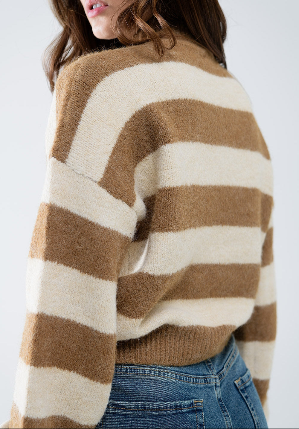 Gestreepte turtleneck sweater met wol - wit en bruin