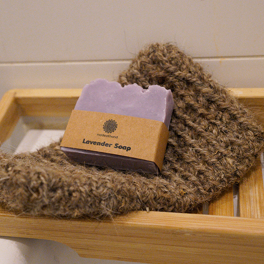 Handgemaakt natuurlijke lavendelzeep met handgebreide geitenharen badhandschoen. Ervaar een luxe en verfrissende reiniging met onze unieke badset: een handgebreide badhandschoen van 100% natuurlijke geitenhaar, gecombineerd met een handgemaakte lavendelzeep op basis van de koudproces methode. Deze set is ook leuk om cadeau te geven aan vrienden en familie.