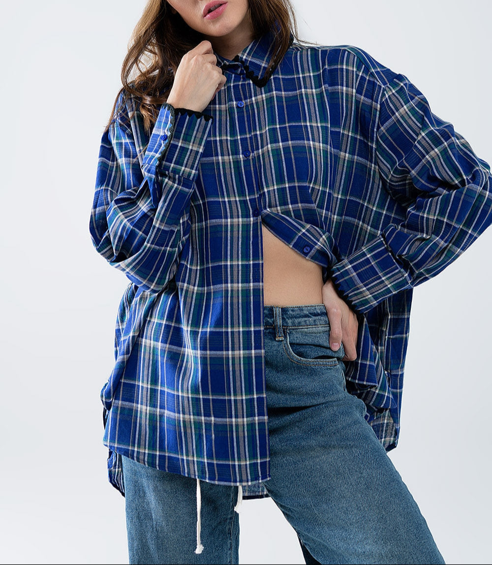 Voeg een stoer en stijlvol statement toe aan je garderobe met ons Lumberjack oversized shirt in tijdloos blauw en groen ruitpatroon. Perfect om nonchalant te dragen over een faux-leren rok of ga voor casual met je favoriete jeans. Het shirt heeft knopen met lange mouwen en is op meerdere manieren te dragen als shirt, blouse of vest.