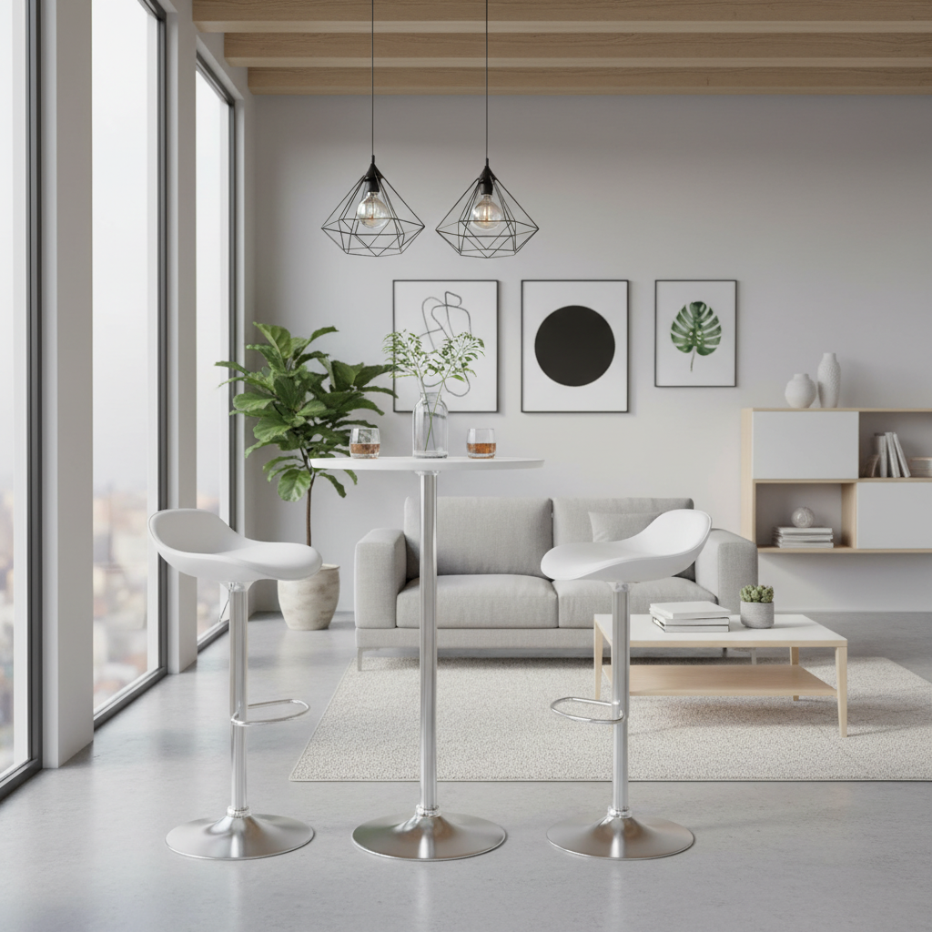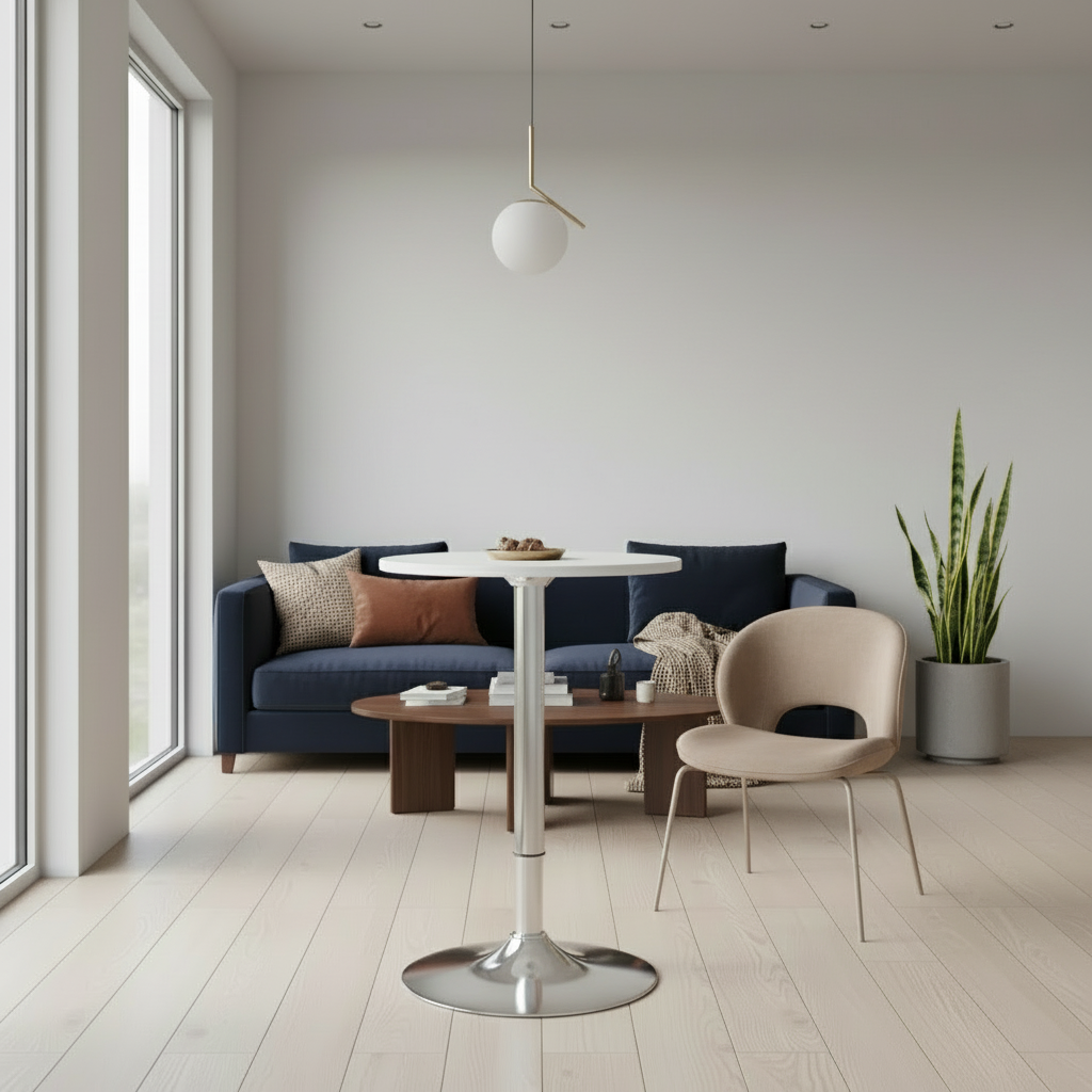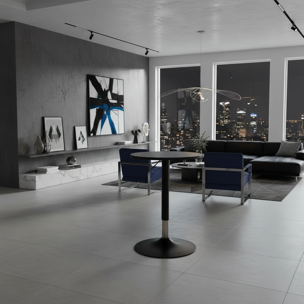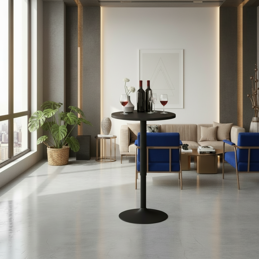 Of je de tafel nu plaatst in de woonkamer, keuken, balkon, thuiskantoor, als mini bar of een ontvangstruimte. Het zorgt voor een moderne en eigentijdse look. De ronde vorm houdt de ruimte open, terwijl het strakke design zich makkelijk laat combineren met allerlei soorten barkrukken en meubelstijlen.