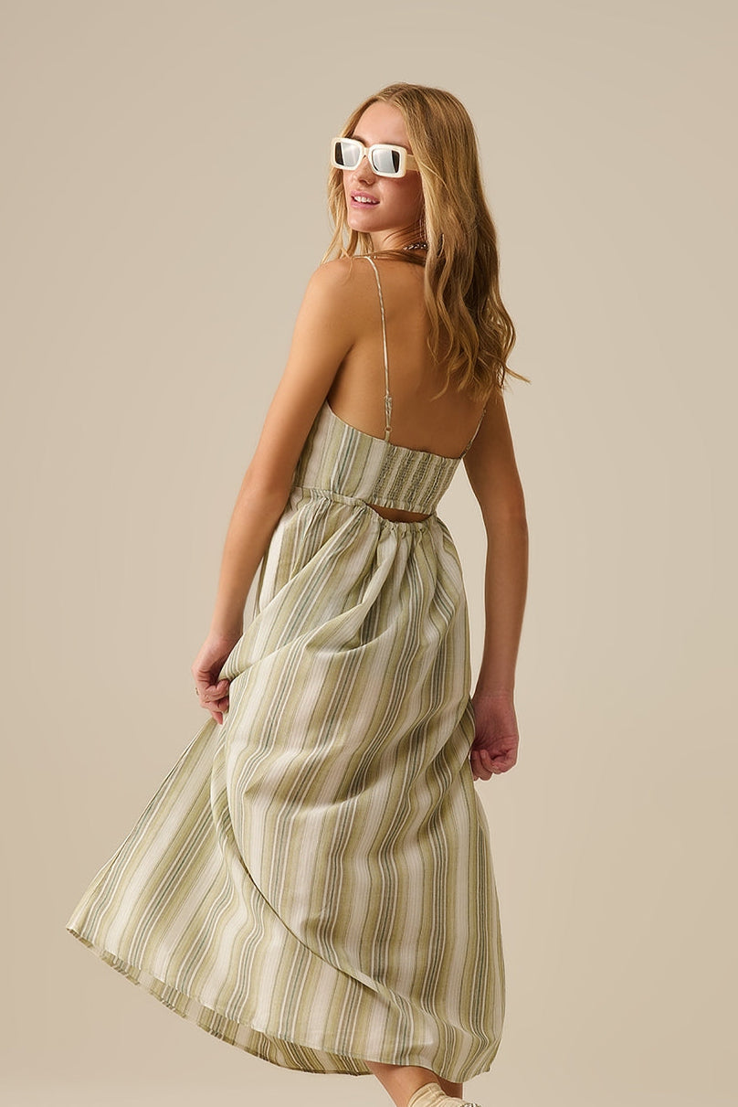 Gestreepte maxi jurk met spaghetti bandjes katoen - licht groen en blauw