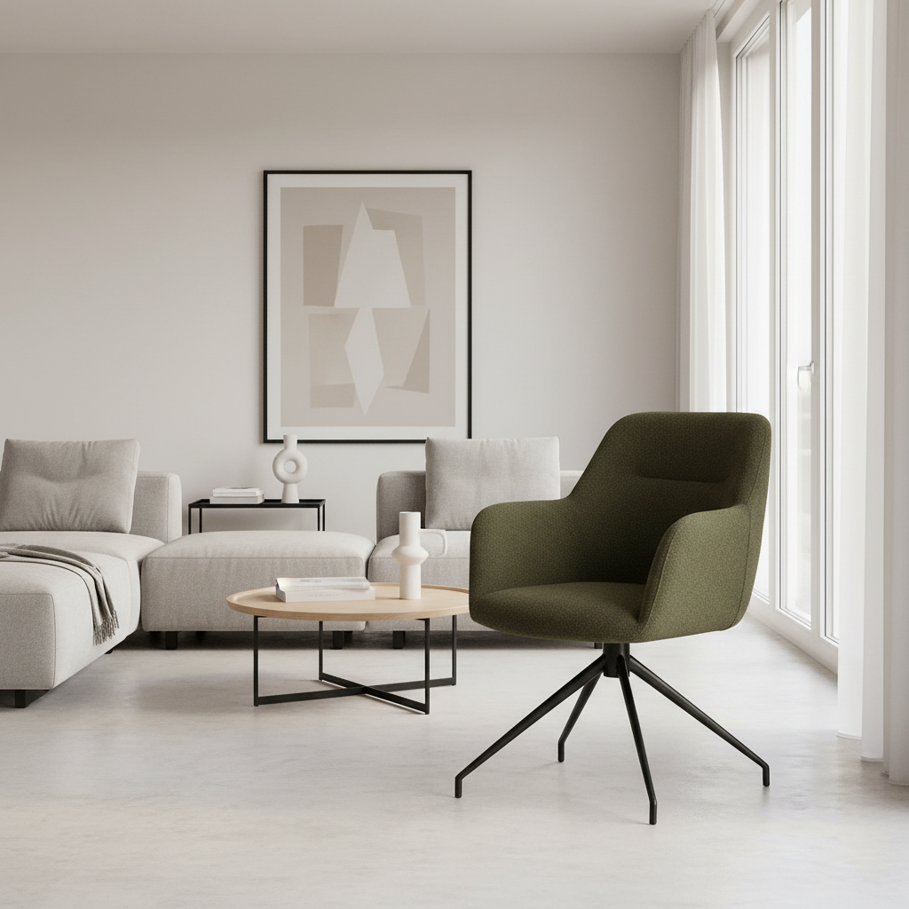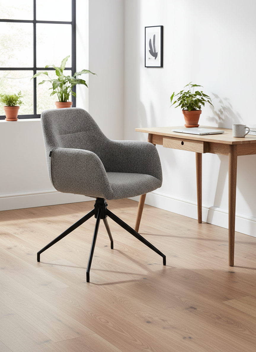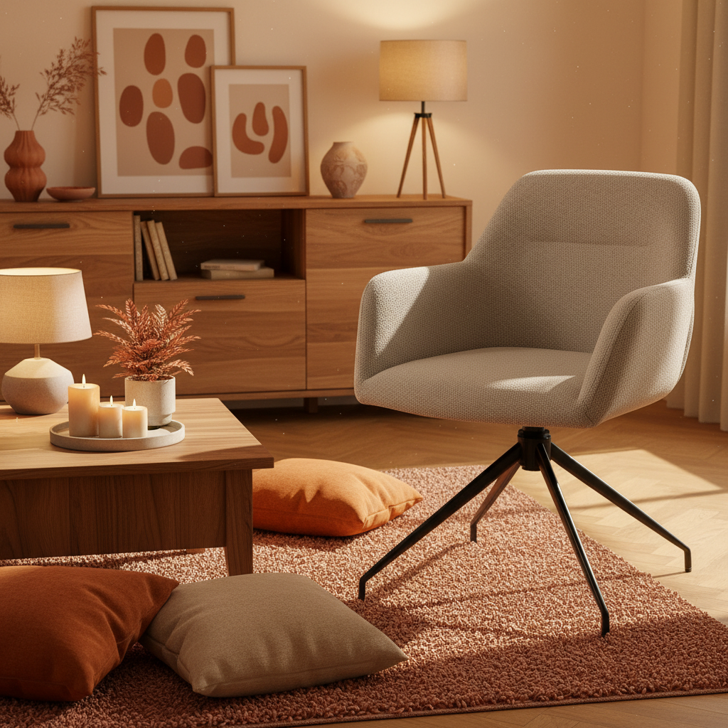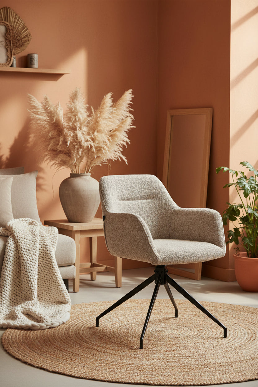 Draaibare stoel van zachte teddy stof. Breng warmte en elegantie in elke kamer met dit moderne design en ultiem zitcomfort. Deze draaibare stoel met armleuningen is de perfecte mix van functionaliteit en gezelligheid. Ideaal voor een eigentijds interieur.