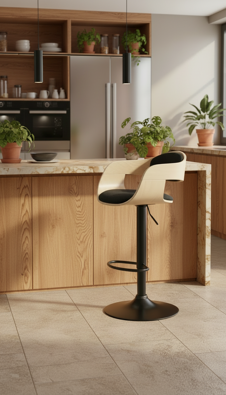 Maak kennis met deze unieke barkruk. Een mix van modern design, zitcomfort en functionaliteit. Of je nu een keukenbar, kookeiland of thuisbar hebt.