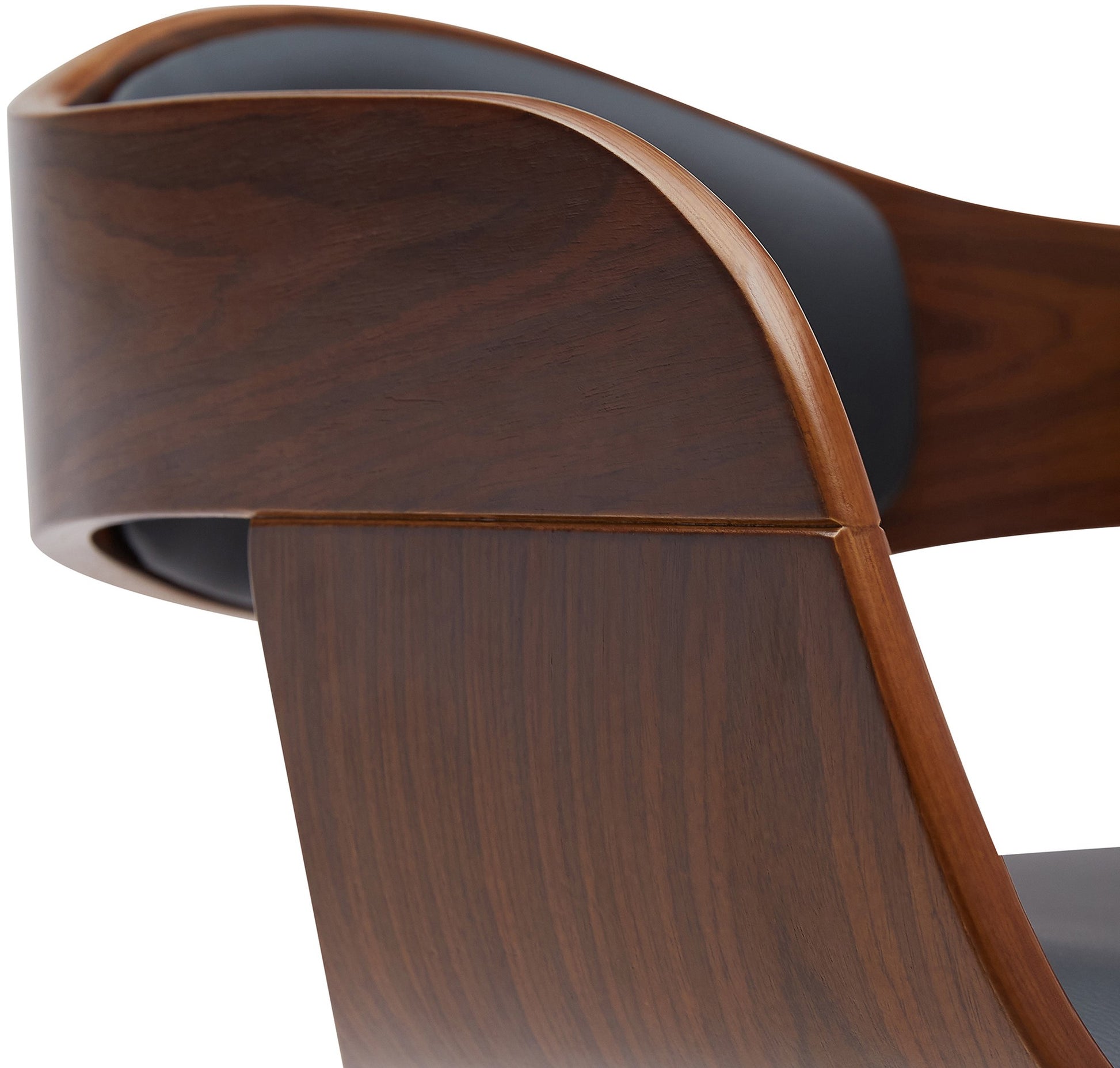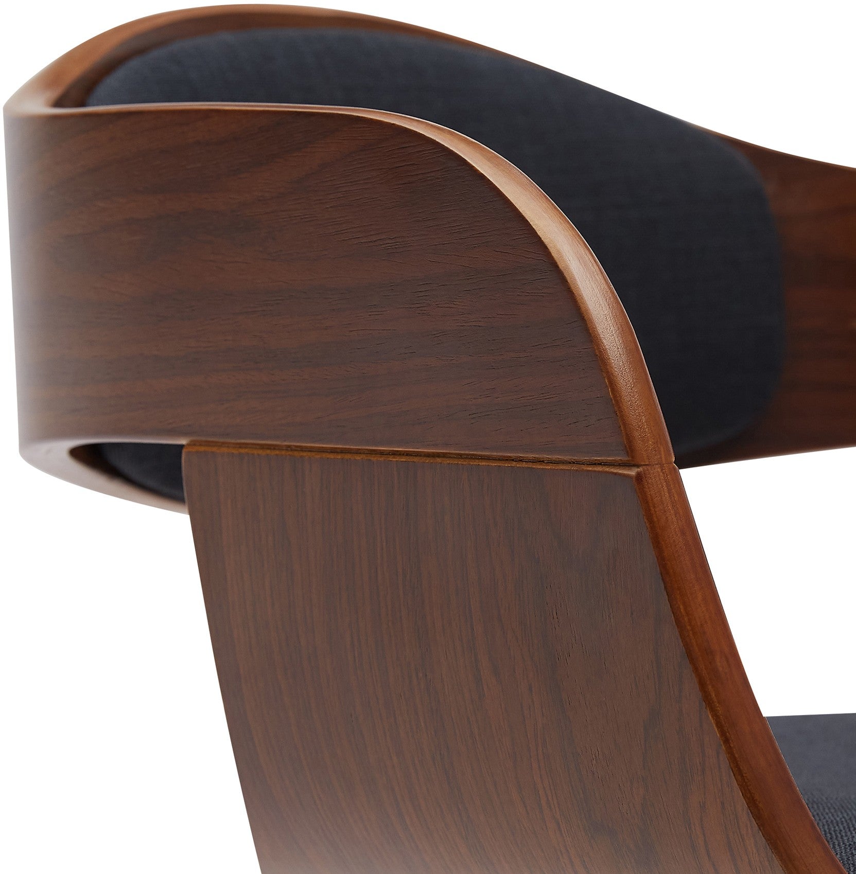 De barkruk is uitgerust met een houten zitschaal, afgewerkt met een dik en comfortabel zit- en rugkussen. De zachte bekleding biedt ondersteuning, zodat je zelfs tijdens lange avonden comfortabel kan zitten.