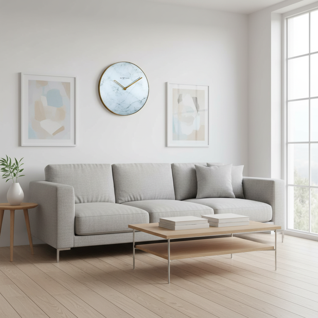 Wandklok marble glas rond Ø 40 cm - wit en grijs blauw